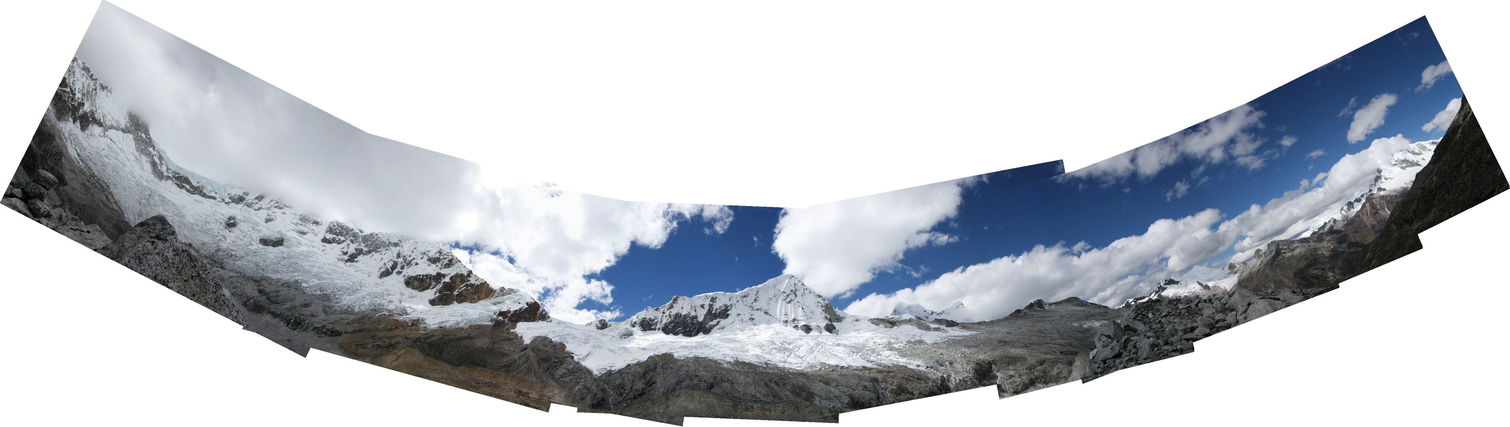 PANORAMA OF THE PEAKS AROUND OUR CAMP- From Left To Right Huandoy,