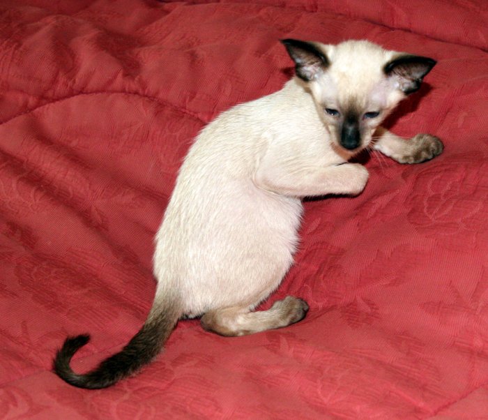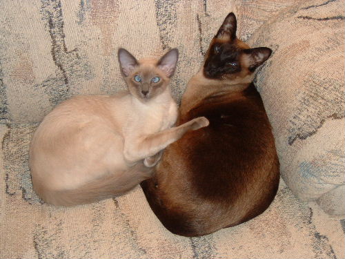 The darker cat (Seth born January 1st, 2000) is a Classic Siamese (not to be confused with the traditional apple headed variant). The rumor has it that they were once used as guard cats. He was rescued from a shelter in Pennsylvania after his breeder suffered a heart attack. His original name was Bully because he used to attack anything near him but with just a bit of affection he came around (although he never could stand being picked up). I find this plausible as the teeth and nails on Siamese are much sharper, longer, and harder than those of any other cat I have come across. The breed is vocal and amazingly loyal and affectionate, almost to the point of being dog like. Go to http://www.cfainc.org/breeds/profiles/siamese.html for more information.