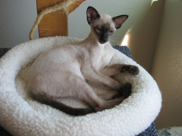 We've decided to name the cat Vesper which is the Roman name for Hesperos or 'The Evening Star'. It is also a synonym for twilight. It seems fitting for a white and black cat. Vesper was pretty cowardly but we've spent a lot of time socializing him and he is coming out of his shell nicely. I expect him to be your average, crazy Siamese cat when he is full grown.