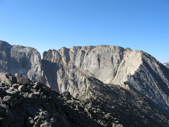 A fun solo, I don't remember what day I did it but it was a nice, sunny day in the high country towards the end of the summer of 2007.  The Thatchtop-Powell ridge was more exposed and difficult than I expected but still passed easily enough.  I found a bunch of gear along the traverse that had been used to either rappell or pitch out a section.  I spent the day listening to Pink Floyd and romping along the divide between Taylor and Powell.  On my way back to the car I came across a big old bull moose.  Car to car in 8 hours.