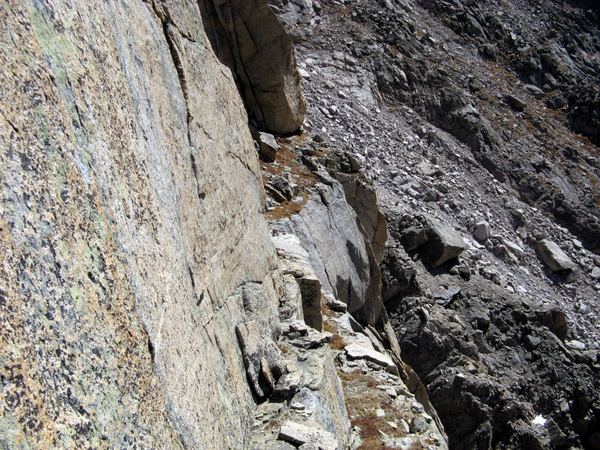 a slight downclimb and you are on a great big ledge. Walk to the