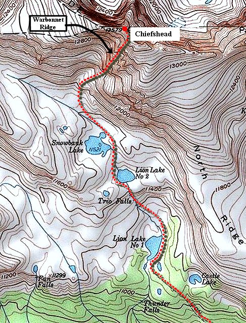 end at Lion Lake #1, then continue up past Trio Falls to Lion Lake
