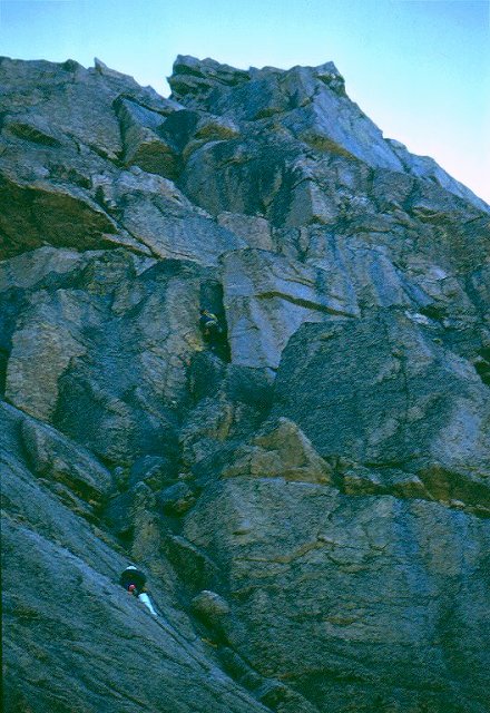 scrambling up to the summit ridge via at 5.0. We did not feel